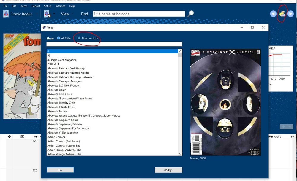 Until HC figures out an official way to way to check for any Titles that you have in your Database but are NOT in the Master Database HC maintains, here are steps to get the same (and better) information. It is better because the old method only found Titles. This method will find Titles OR Issues. 1) Make a copy of your database. Use Menu item File->Save a Copy and give it a new name. 2) Switch to the new copy. Use Menu item File->Open... 2.1) Optional. Change Theme. Use Menu item File-Theme... Using a color that is NOT your normal Theme will let you know this is NOT your real database. 3) Run an Update. Use Menu item Internet->Check for Updates This is only needed if you have not run the most recent update. If you are not sure you can 'force' an Update by Pressing and Holding the SHIFT key when selecting Check for Updates. 4) Set all comic Quantity in Stock to 0 NOTE: Make sure you ARE in you database copy (the Theme Color would help). You can check by looking at the title bar (far top left corner) where you ComicBase Edition (database name) is displayed. Use Menu item Items->Mass Change. Set Change: to Qty in Stock Click To: Value and enter 0. Apply To: All Titles. Click Make Changes. (This can NOT be undone. See Note about making sure what you are working with...) Do this for Comic Books, Books and Magazines. 4) Force an Update. Press and Hold SHIFT key while selecting Menu item Internet->Check for Updates Using the SHIFT key 'forces' the system to re-run the last update. 5) Display results. When the Update is completed, click the See What's New button. Anything Deleted (Titles or Issues, Comics Books, Books, or Magazines) is NOT in the Master database but WAS in your database. PS While these specific steps are for CB 2021 (and CB 2020), they should work for earlier versions.